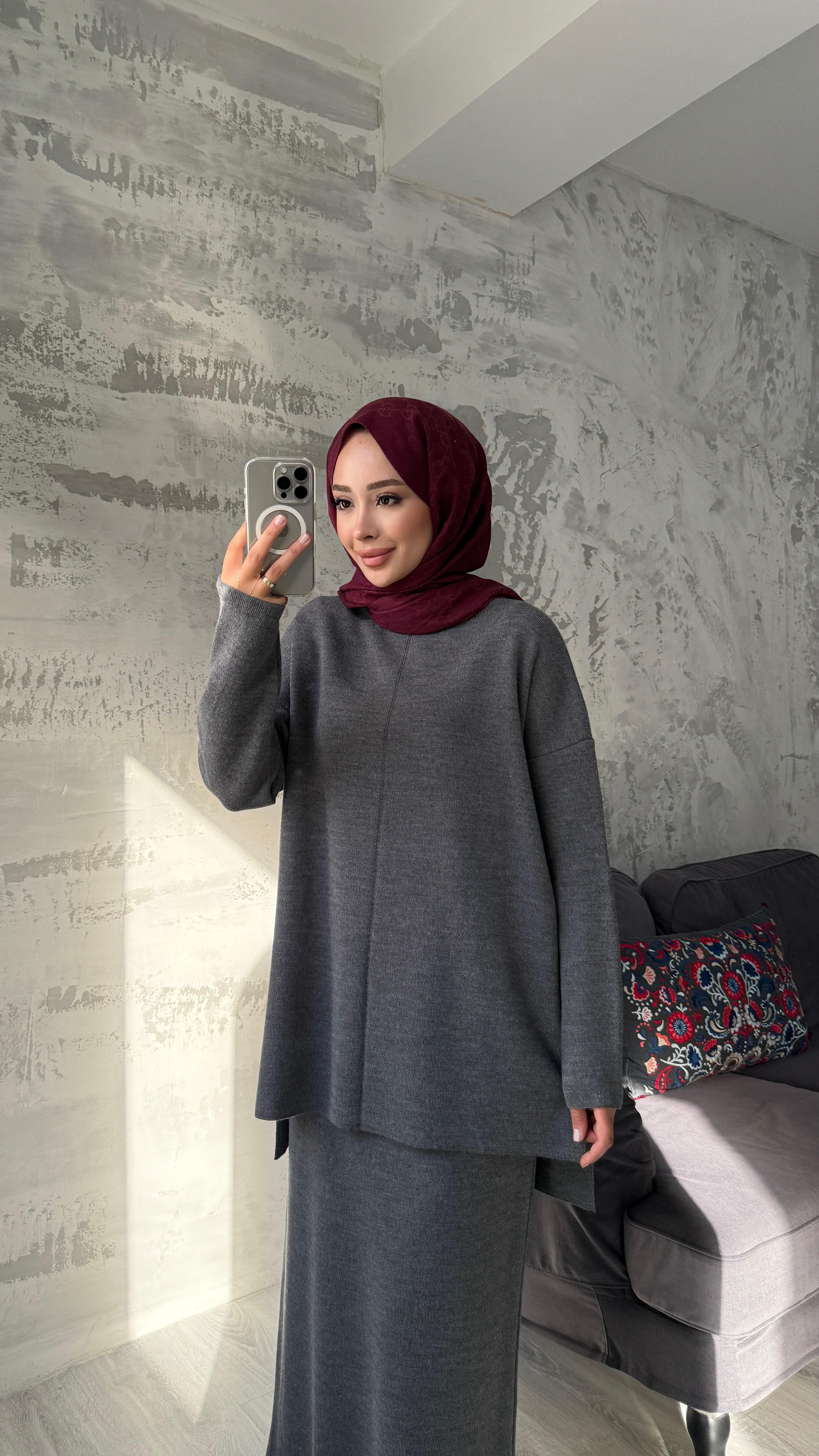 Karla Etekli Triko Takım Antrasit